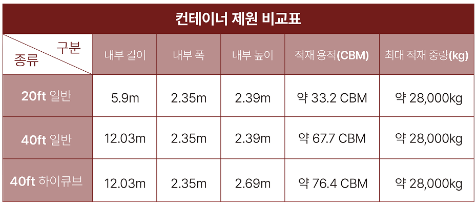 컨테이너 제원